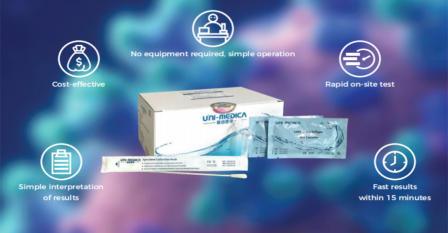 本次驰援香港的检测试剂为联合医学新冠抗原快速检测试剂,具有方便、快速,及灵敏度和特异度高的优点,操作简单、只需15分钟即可得到检测结果,无需专业设备以及专业实验,即可实现多场景的新冠病毒快速检测。实现新冠疑似患者快速辅助检测及重点人群快速辅助筛查,对于患者早期诊断与及时干预具有重要的意义。联合医学新冠抗原快速检测试剂盒已先后取得欧盟CE,德国Bfarm等认证,并在全球多个国家和地区推广使用。