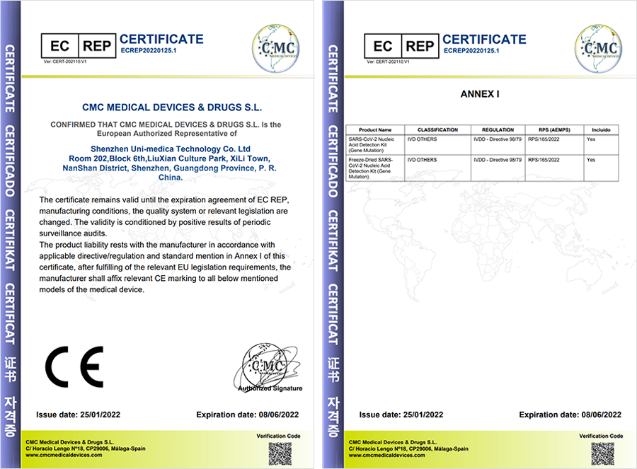联合医学奥密克戎筛查试剂盒获得CE认证